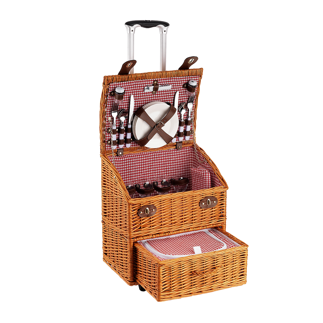 4 kişilik Tekerlekli Pötikare Desenli Piknik Sepeti (NZ-43) (Ön Sipariş)