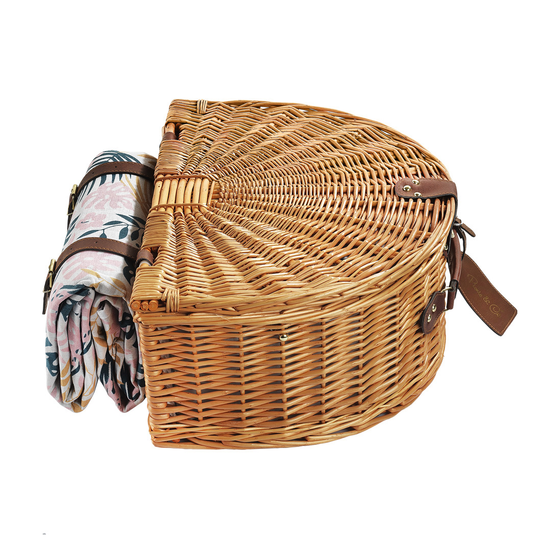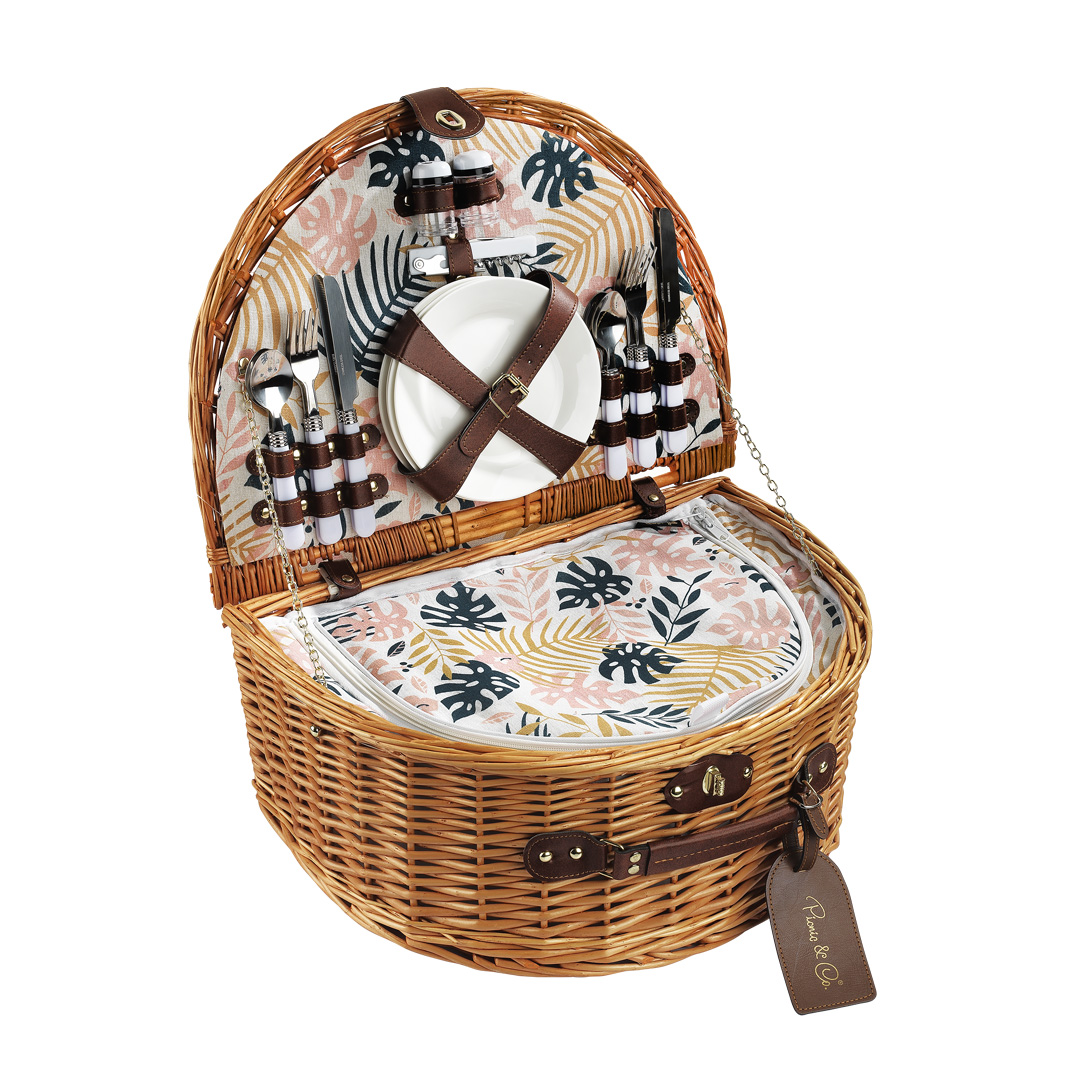 4 Kişilik Yaprak Desenli Yarım Ay Piknik Sepeti (NZ-15)