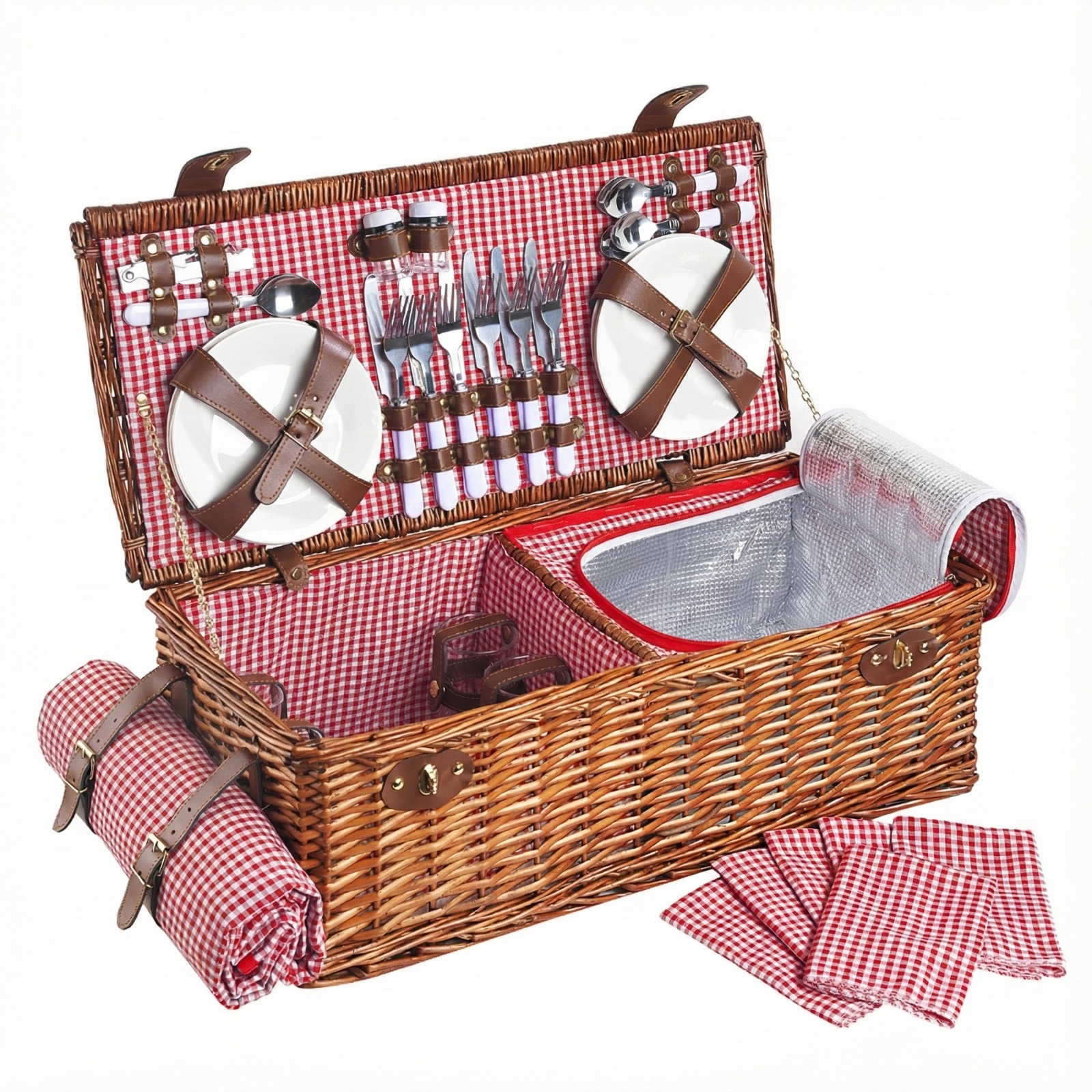 6 kişilik Kırmızı Pötikare Desenli Piknik Sepeti (NZ-27)