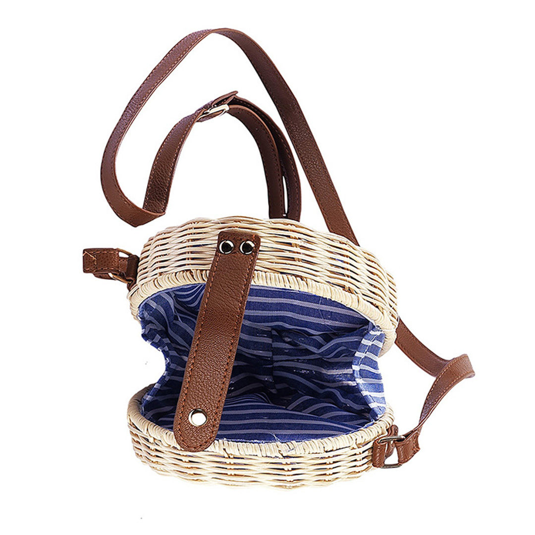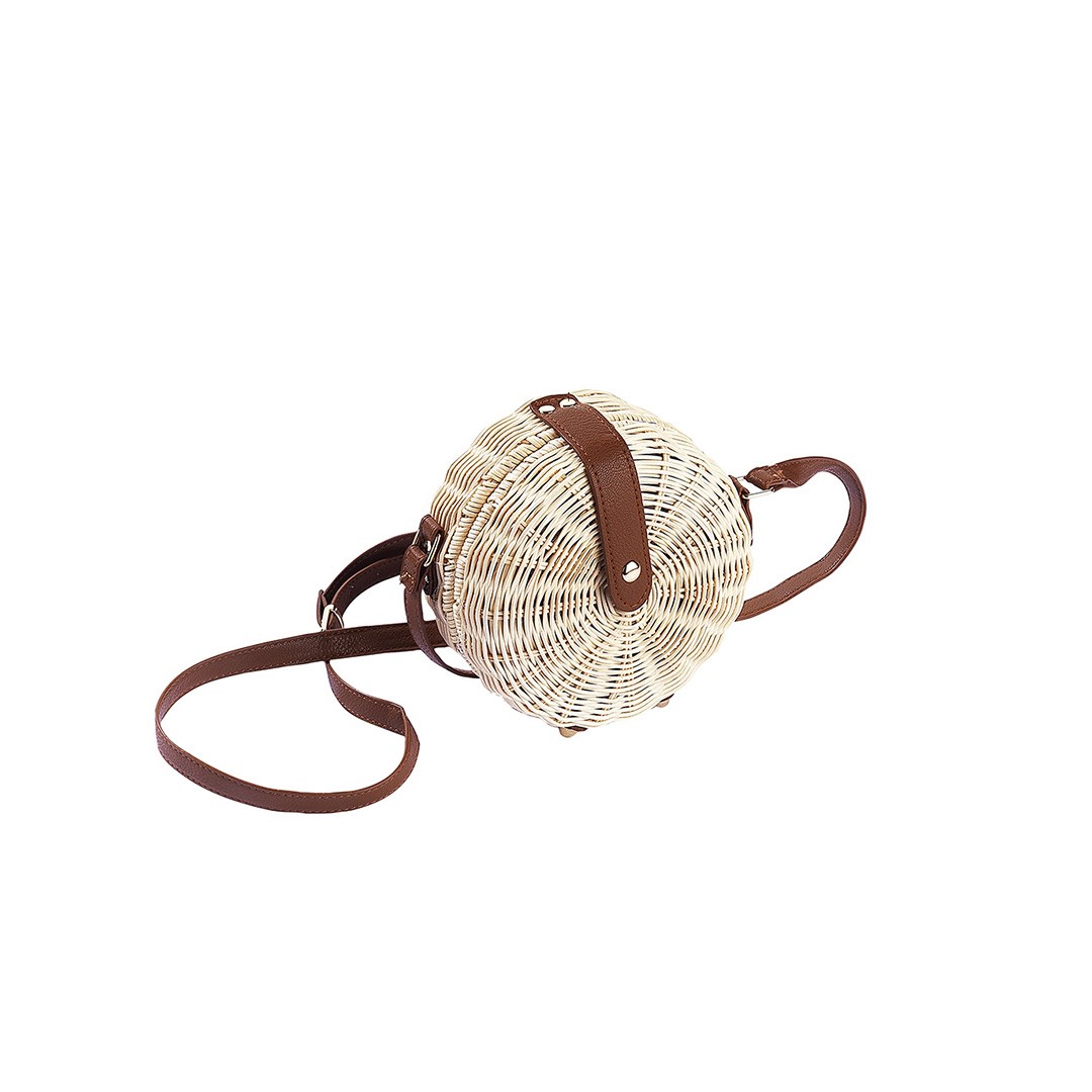 Yuvarlak şeklinde, natürel renk hasır yapısı ve deri detaylarıyla yaz kombinlerinize şıklık katacak.